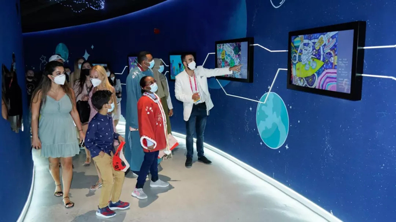 作為幸運觀眾,亞信一家跟隨講解員參觀了中國館內(nèi)各個展項。亞信家的大兒子是個太空迷,對中國館內(nèi)太空展項深感興趣,不等講解員介紹,他就對“嫦娥五號”“天問一號”“北斗”等中國航天成就如數(shù)家珍。他表示,中國在航天航空領(lǐng)域處于非常領(lǐng)先的水平,所以他非常關(guān)注,希望自己長大后也可以成為宇航員去探索太空。