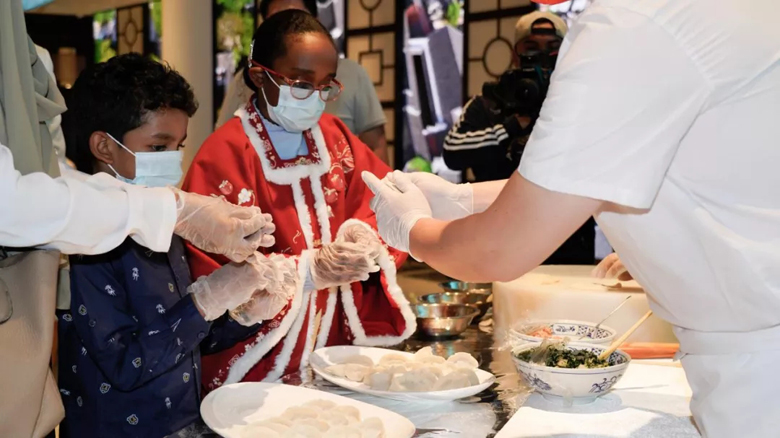 無論身在何方,中國人過年總是少不了餃子。百年老字號揚州冶春餐廳也為亞信一家準(zhǔn)備了包餃子這一獨具中國年味兒的體驗,小朋友們跟著大廚學(xué)得有模有樣,十分得意地向工作人員展示自己包的餃子。豐盛而美味的餃子也讓他們連連稱贊,女主人表示自己回家也要嘗試做這種獨特的中國食物。