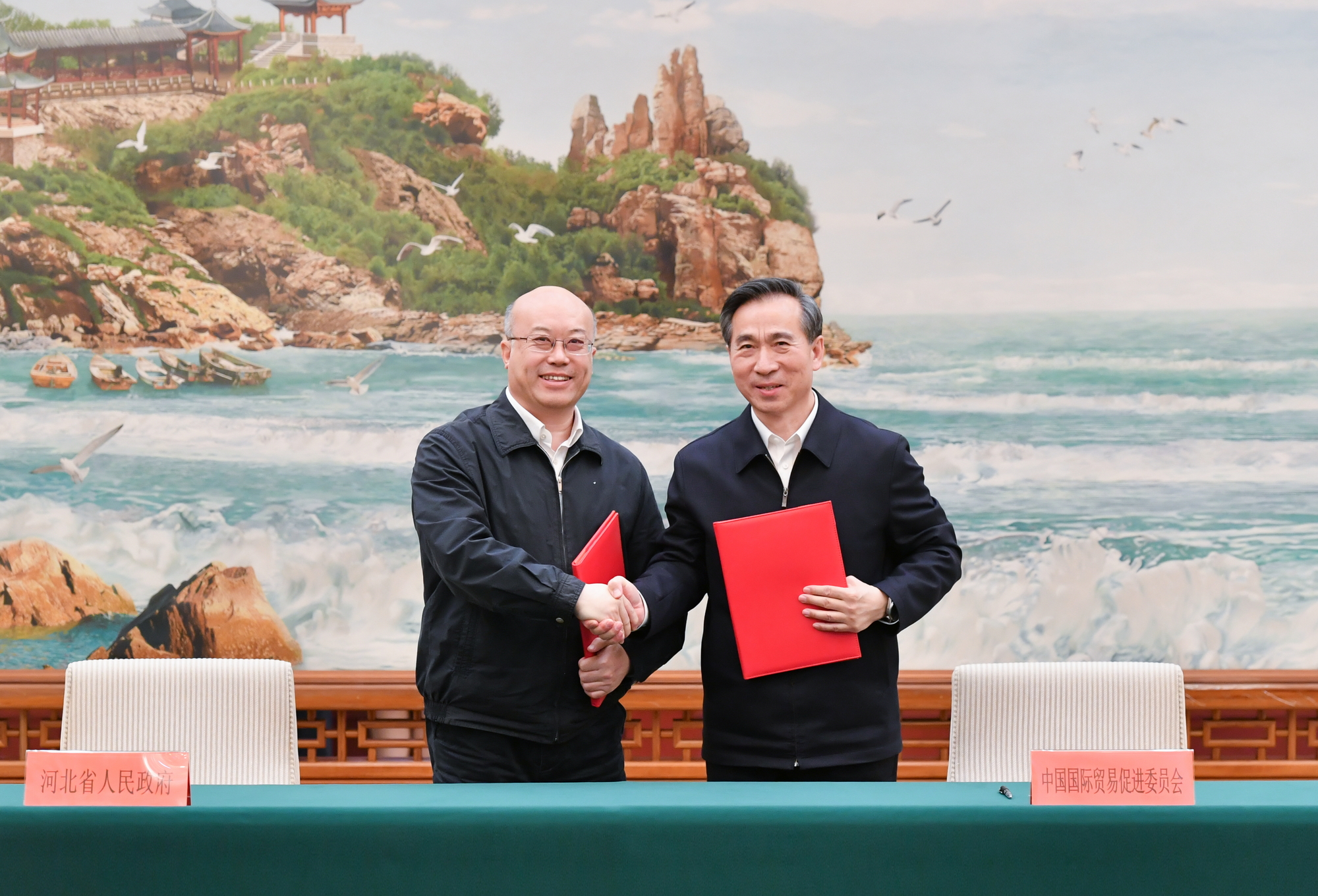 4月28日,中國國際貿易促進委員會與河北省人民政府在石家莊簽署深化合作備忘錄。中國貿促會黨組書記、會長任鴻斌與河北省委書記、省人大常委會主任倪岳峰,河北省委副書記、省長王正譜參加活動并座談。