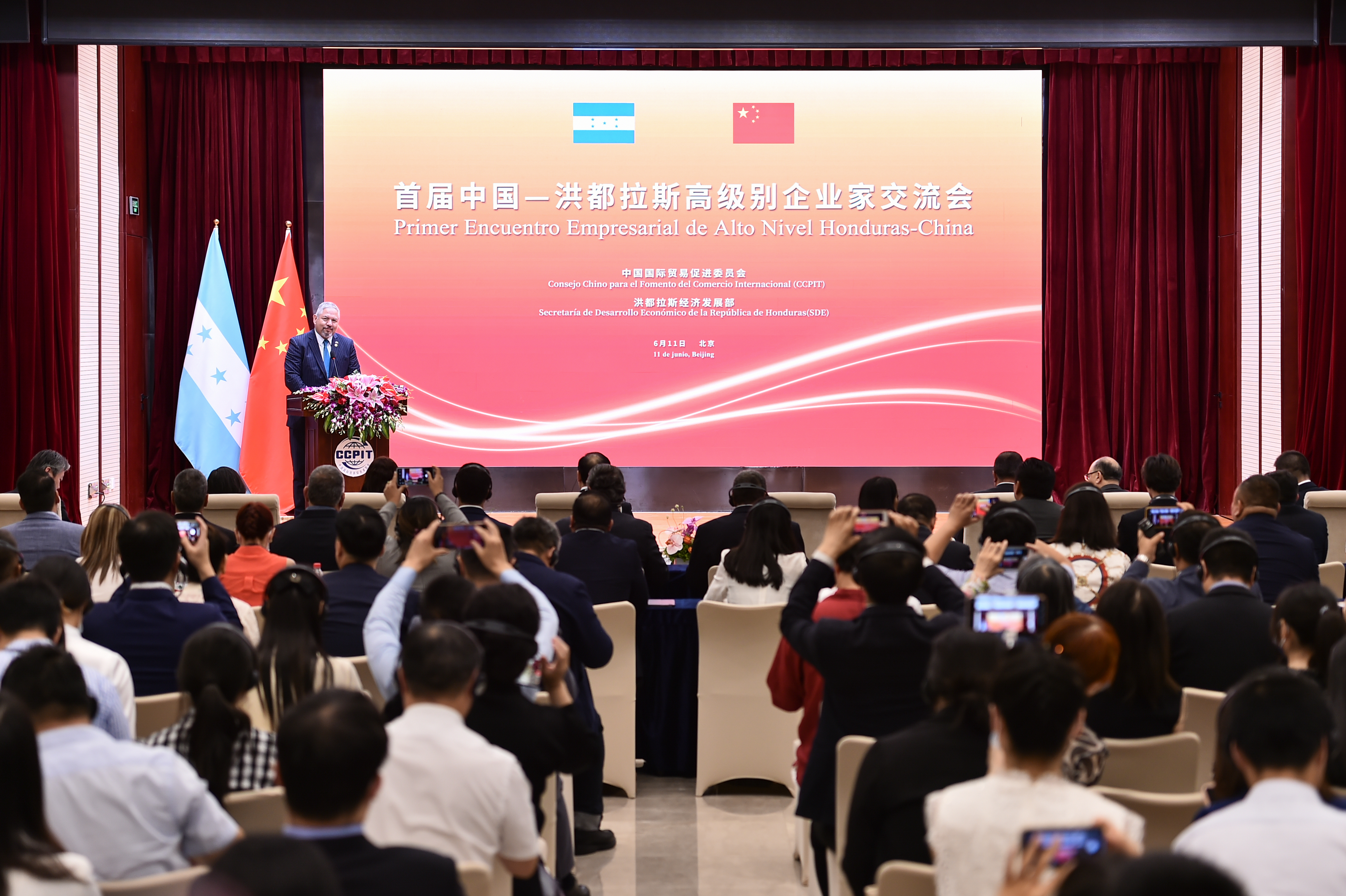 6月11日下午,首屆中國—洪都拉斯高級別企業家交流會在京成功舉辦。中國貿促會副會長張少剛和洪都拉斯外長雷納、經濟發展部部長塞拉托、農業及畜牧業部部長蘇阿索、經濟發展部副部長雷東多出席交流會,中國國際商會秘書長孫曉主持會議。