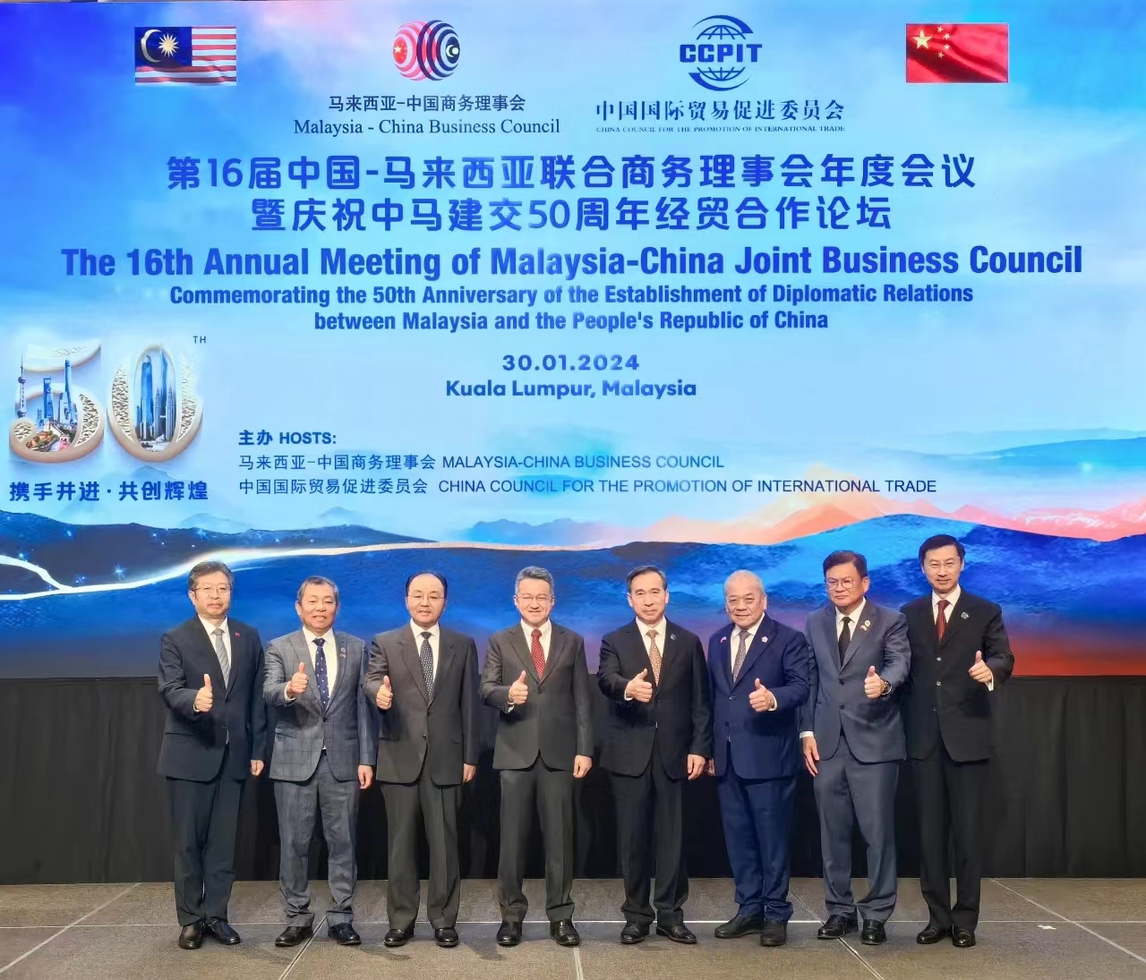 1月28日至31日,中國貿促會、中國國際商會會長任鴻斌率中國企業家代表團訪問馬來西亞,出席由中國貿促會和馬中商務理事會共同主辦的第16屆中國—馬來西亞聯合商務理事會暨中馬建交50周年經貿合作論壇。馬來西亞投資、貿易及工業部副部長劉鎮東,馬來西亞總理政治秘書曾敏凱,馬中商務理事會執行委員會主席吳添泉,中國駐馬來西亞大使歐陽玉靖等出席活動并致辭,中馬工商界人士300余人參加活動。?