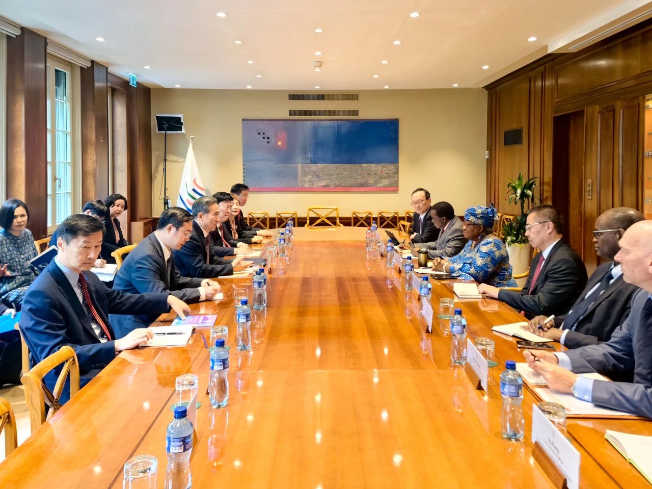 6月17日,中國貿(mào)促會會長任鴻斌在瑞士日內(nèi)瓦會見世貿(mào)組織總干事奧孔喬-伊維拉,雙方圍繞加強工商界參與全球經(jīng)濟治理、維護多邊貿(mào)易體制、保障全球產(chǎn)業(yè)鏈供應(yīng)鏈穩(wěn)定暢通及鏈博會等議題深入交流。