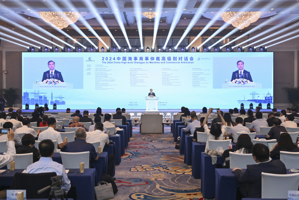 6月27日,2024中國海事商事仲裁高級別對話會在北京舉辦。中國貿促會會長、中國海事仲裁委員會主任任鴻斌,司法部副部長胡衛列,交通運輸部副部長付緒銀,中華人民共和國二級大法官、最高人民法院審判委員會副部級專職委員王淑梅出席開幕式并致辭。中國貿促會副會長、中國海事仲裁委員會副主任于健龍主持開幕式。