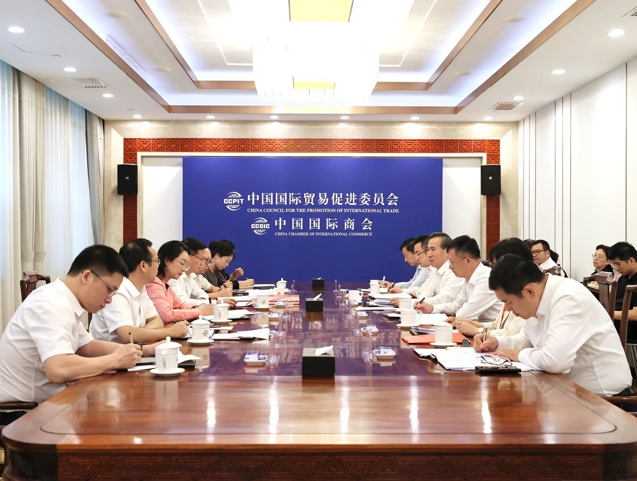8月16日,中國貿促會會長任鴻斌在京會見廣西壯族自治區副主席譚丕創一行,雙方就共同推進第21屆中國—東盟商務與投資峰會、東盟與中日韓(10+3)產業鏈供應鏈對接大會籌辦工作,支持廣西對外開放等議題進行了深入交流。