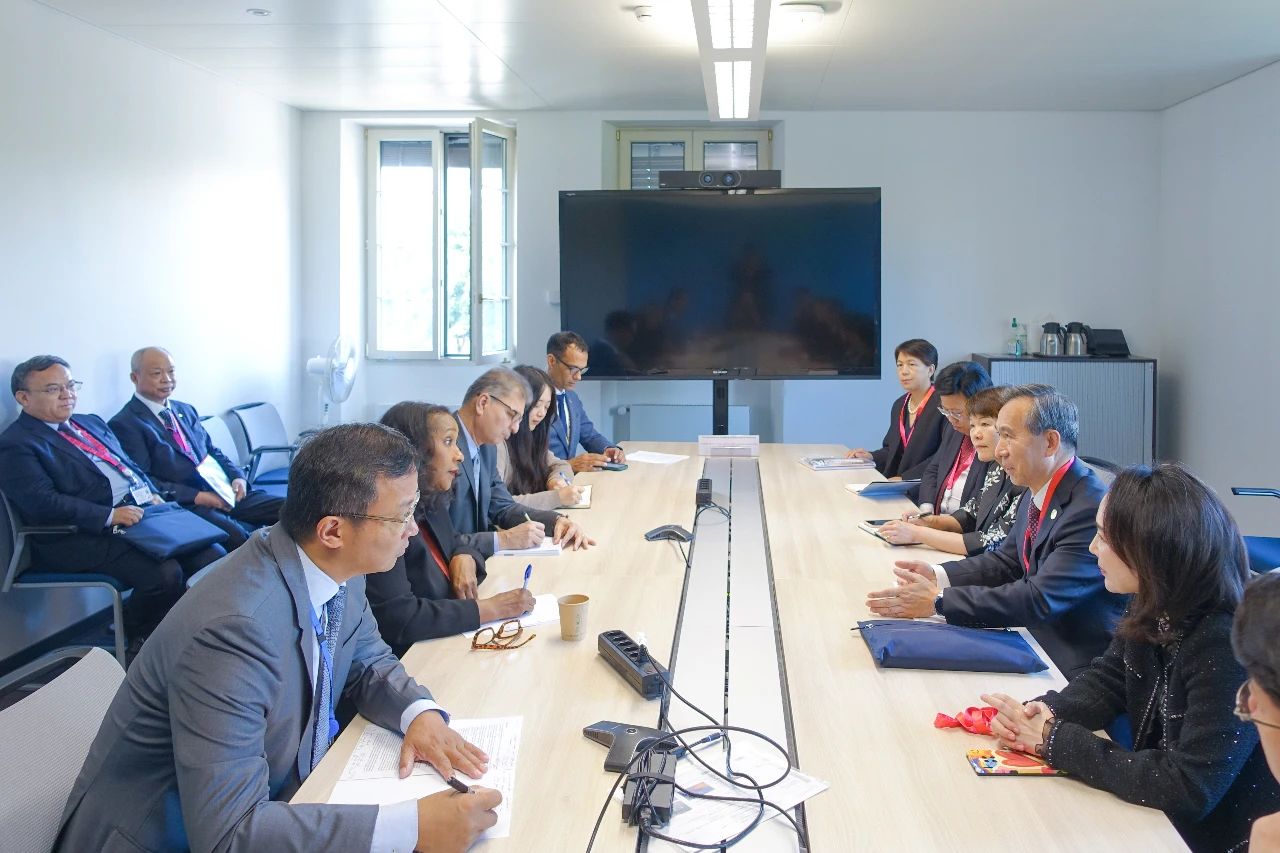 9月10日,中國貿促會會長任鴻斌率中國企業家代表團訪問瑞士期間,在日內瓦分別會見世界貿易組織總干事奧孔喬-伊維拉、聯合國貿發會議秘書長格林斯潘和國際貿易中心執行主任科克-漢密爾頓,積極宣介中國共產黨二十屆三中全會精神,并就支持多邊主義、維護多邊貿易體制、維護全球產業鏈供應鏈穩定暢通、加強機構間務實合作、推動落實中非“十大伙伴行動”等議題進行深入交流。