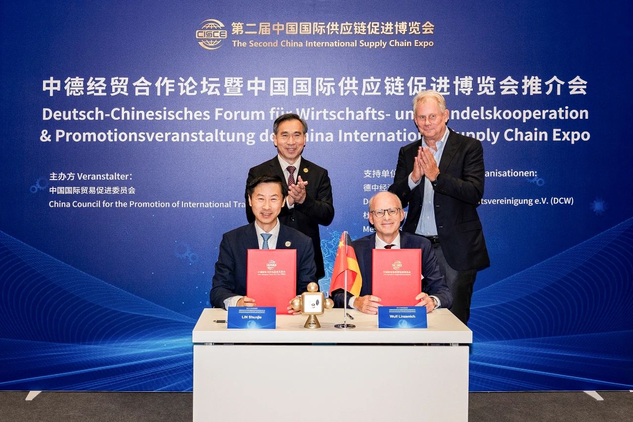 推介會期間,中德企業代表分享產業鏈供應鏈合作案例,中展集團推介第二屆鏈博會,并與德中經濟聯合會簽署相關協議。近130位中德兩國企業代表出席推介會。