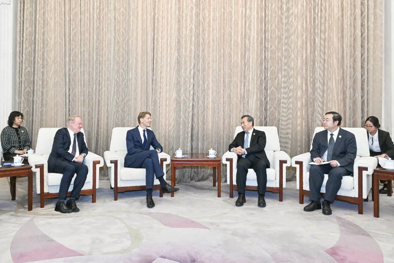 9月20日,中國貿促會會長任鴻斌在京會見丹麥馬士基集團董事長羅伯特·馬士基·烏格拉一行,雙方就深化中丹綠色合作、推動航運業綠色轉型及擴大馬士基集團在華投資等議題進行交流。