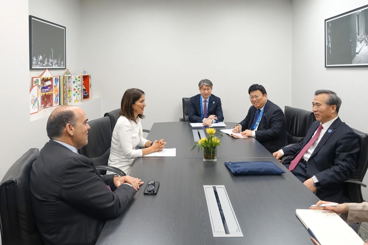 當地時間11月15日上午,中國貿促會會長任鴻斌在秘魯利馬會見2024年亞太經合組織(APEC)工商領導人峰會主席費爾南多·薩瓦拉、亞太經合組織工商咨詢理事會(ABAC)主席茱莉婭·托雷布蘭卡,雙方就深化亞太經貿合作等議題進行交流。