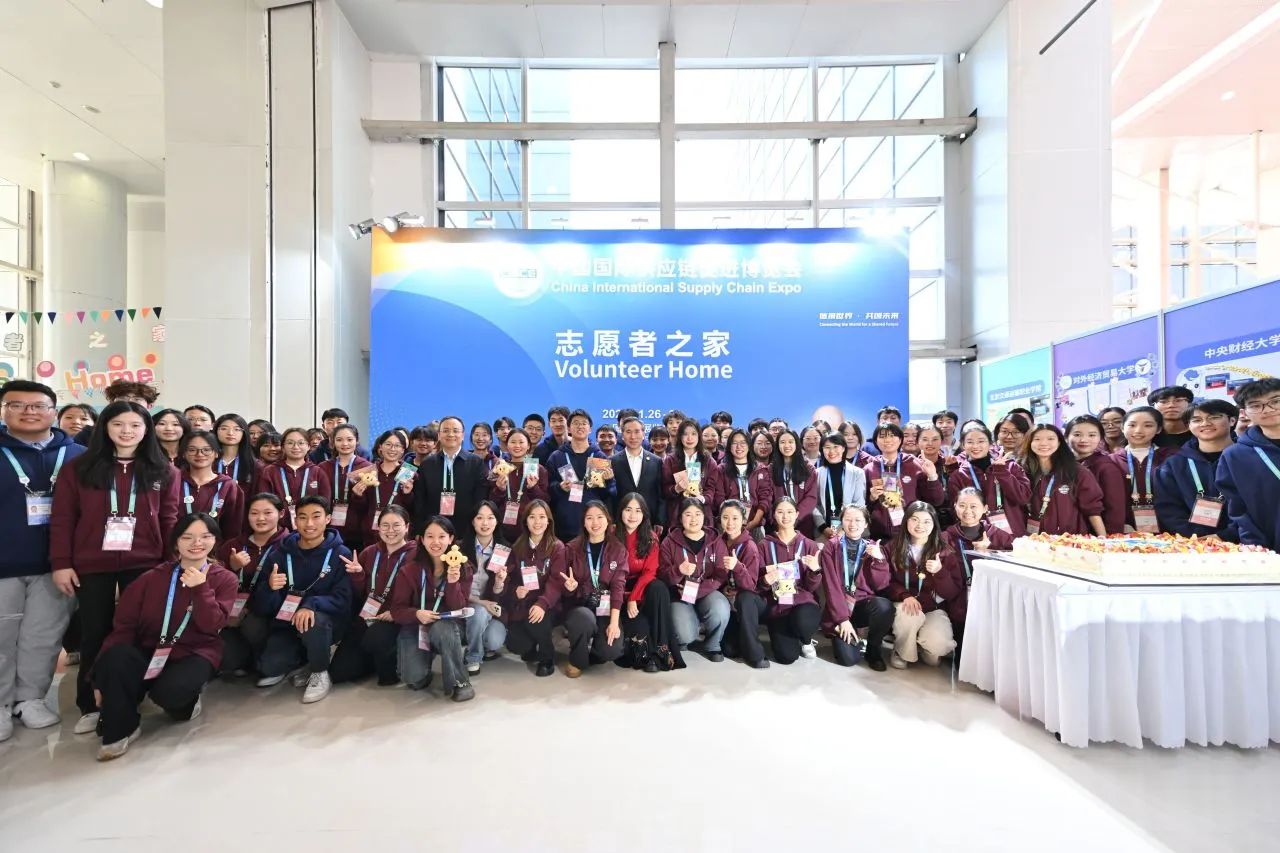 11月28日下午,第二屆鏈博會志愿者集體生日會在中國國際展覽中心(順義館)志愿者之家舉行。中國貿(mào)促會會長任鴻斌與來自北京外國語大學(xué)、中央民族大學(xué)、中央財經(jīng)大學(xué)等12所高校的近400名志愿者共同慶生。