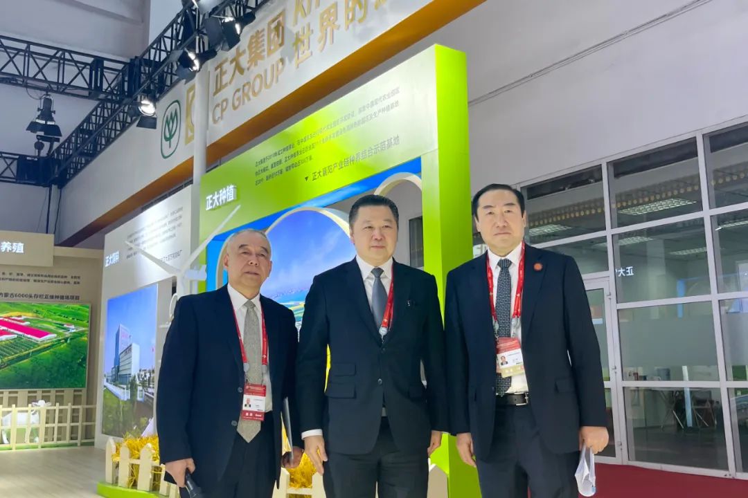 ▲謝吉人集團董事長(中)和張少剛副會長(右)在正大展館合影留念。薛增一資深副董事長(左)一同合影。